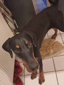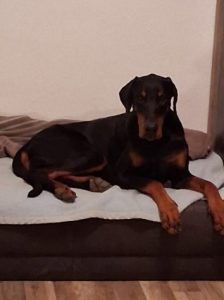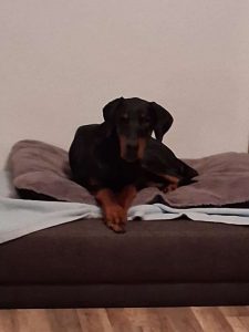 Arthur ist ein sehr lieber Dobermann, der sich auf der Pflegestelle sehr gut mit den anderen Hunden versteht. Er bleibt auch mal zusammen mit den anderen Hunden eine angemessene Zeit alleine zuhause. Im Auto ist er ein braver Begleiter und er ist auch bereits stubenrein.