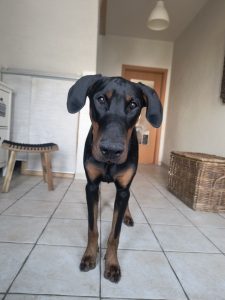 Lukass lebt zusammen mit drei weiteren Hunden (zwei kastrierten Dobermann-Damen – 9 und 11 Jahre und einem kastrierten Rhodesian-Ridgeback-Rüden – 4 Jahre) und einem Kater. Die beiden Dobermann-Damen waren sehr offen für den neuen Jüngling – allerdings war er etwas zu stürmisch und distanzlos und musste kurz hundekonform eingenordet werden. Der Rüde des Hauses war schon eine deutliche Herausforderung. Die klaren Ansagen seines Artgenossen setzen ihm schnell seine Grenzen. Diese galt es auch eine Weile einzuhalten. Langsam entstand hier jedoch eine beidseitige Akzeptanz. Hier sollten bei einer gleichen Situation im neuen Zuhause klare Regeln aufgestellt und eingehalten werden – Intervenieren sollten hier nur die Menschen!